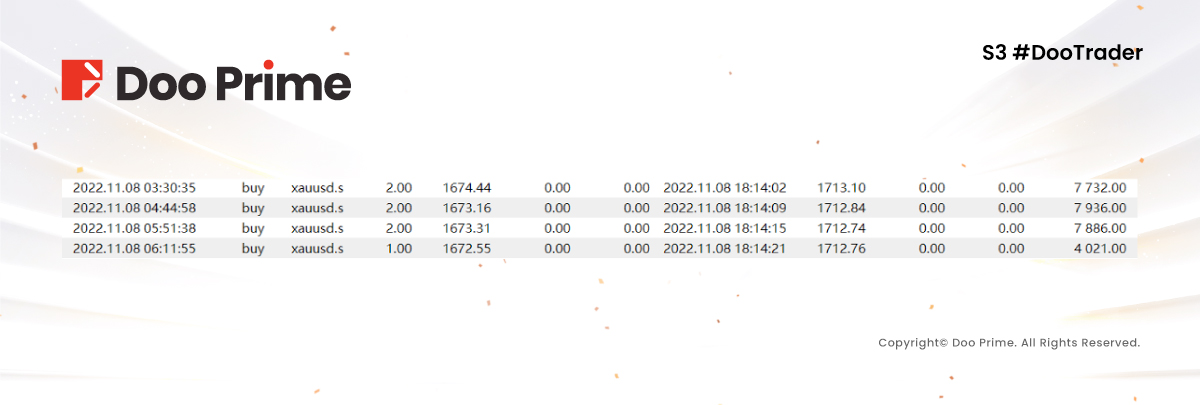 Later, from November 7th to 8th, Xue YanqXXX’s trading strategy was patient and cautious as the overall XAUUSD market  is in a sideways drift. However, as XAUUSD pulled up quickly on 8th November 2022 and broke through range-bound, Xue YanqXXX immediately increased his trading position size to 2 – 10 lots and finally gained USD 5,000+ returns in two days.