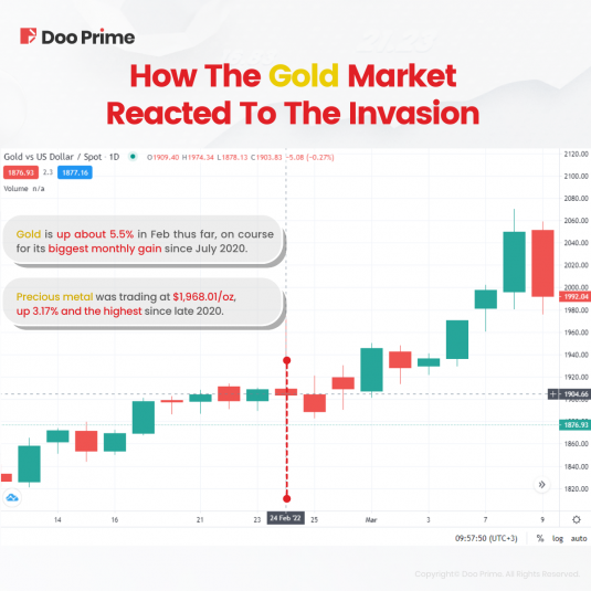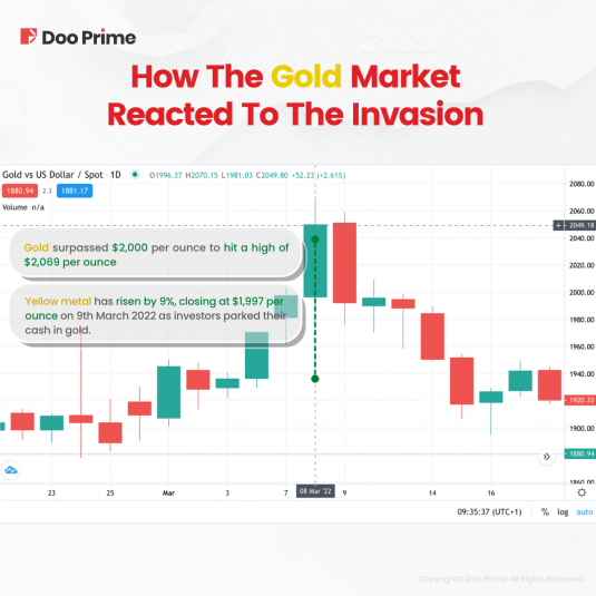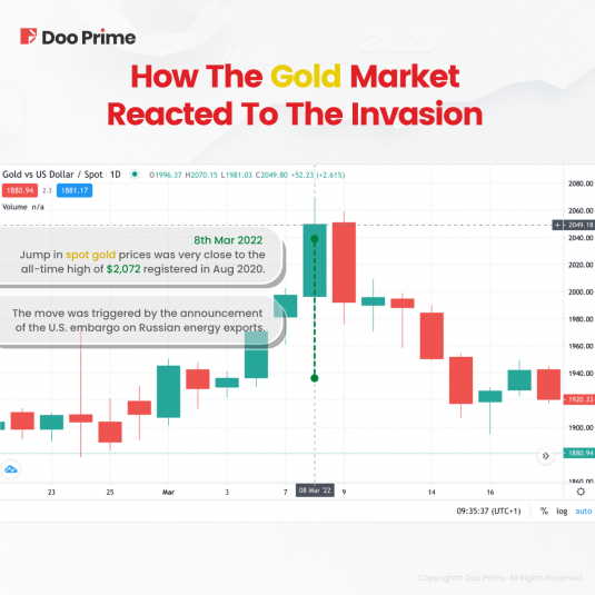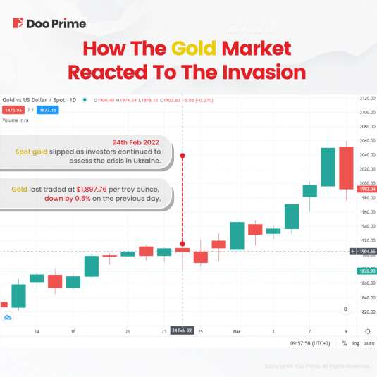 During this interval, gold surpassed $2,000 per ounce to hit a high of $2,069 per ounce on 8th March 2022 after the U.S. announced an import ban on Russian oil. As seen above, gold was trading at about $1,900 per ounce, prior to Russia’s invasion of Ukraine two weeks ago, setting a difference of $169.