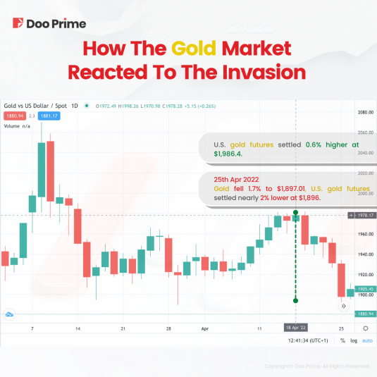As of 25th April 2022, gold fell 1.7% to $1,897.01, while U.S. gold futures settled nearly 2% lower at $1,896.
