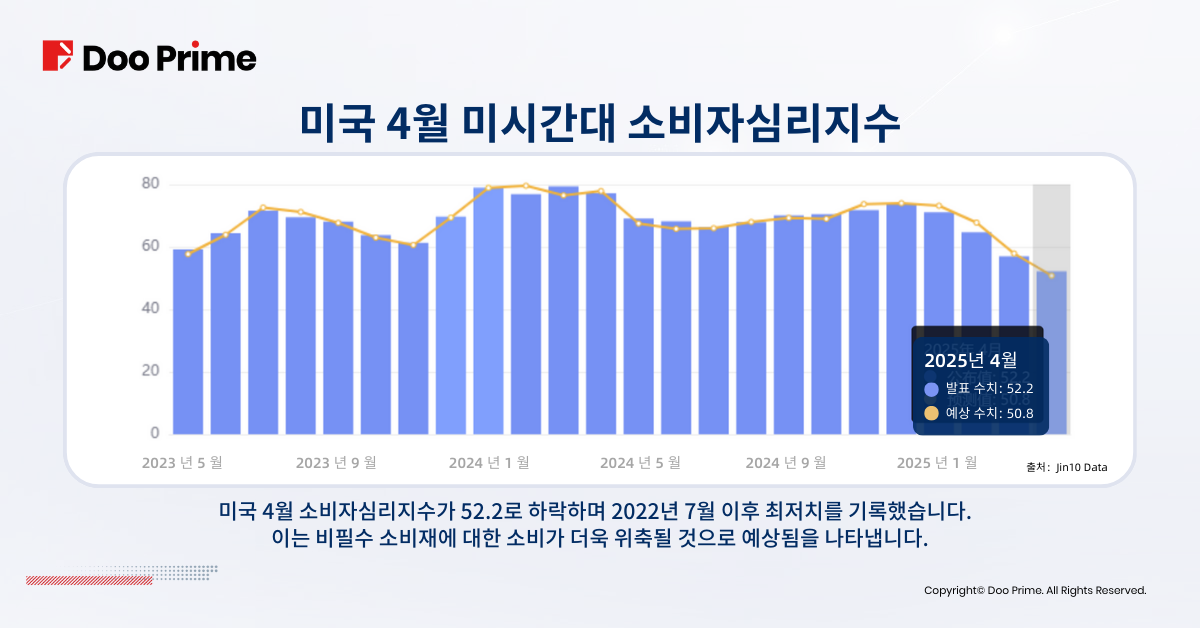 트럼프의 관세는 물가를 상승시켰으며 동시에 럭셔리 제품의 판매 가격도 올라 소비 욕구를 억제시켰습니다. 미국 경제의 불확실성이 심화되면서 빈부 격차가 확대되었고 고급 소비재의 주요 타깃층은 더욱 좁아졌습니다. 중산층 소비자의 자산이 감소하면서 구매력도 더욱 약화되었습니다.미국의 4월 미시간대 소비자심리지수 최종치는 52.2로 2022년 7월 이후 최저치를 기록하였으며 이는 필수품이 아닌 소비재에 대한 지출이 더욱 위축될 것으로 예상됨을 나타냅니다.유럽의 최대 명품 시장인 미국에서의 수요 부진은 프랑스, 이탈리아 브랜드에 직접적인 타격을 주고 있습니다.