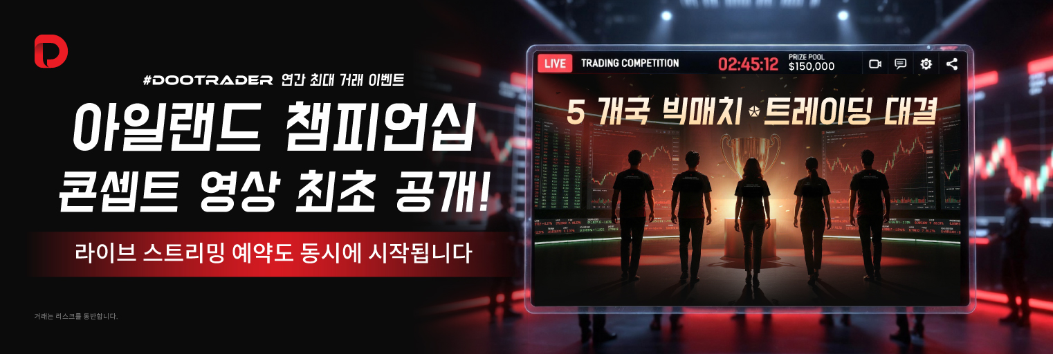 5개국 빅매치, 트레이딩 대결#DooTrader 연간 최대 거래 이벤트 – 서바이벌 아일랜드 콘셉트 영상이 공개됩니다! 라이브 스트리밍 예약도 동시에 시작됩니다.
