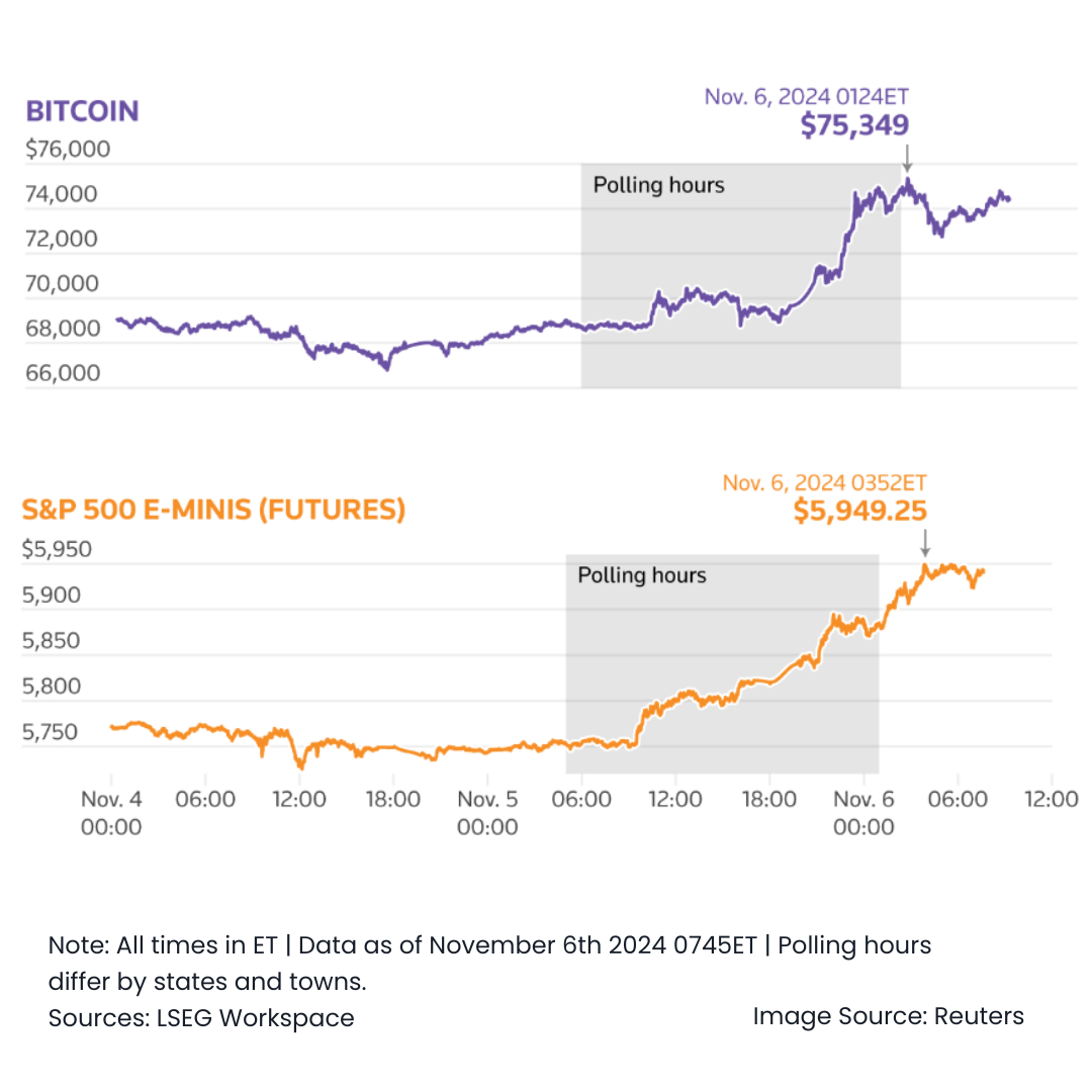 Markets also watched for the final results in congressional races, with the Republican Party potentially holding a majority in the House and having gained control of the Senate. A strong Republican presence in Congress could further smooth the path for Trump’s policy agenda.