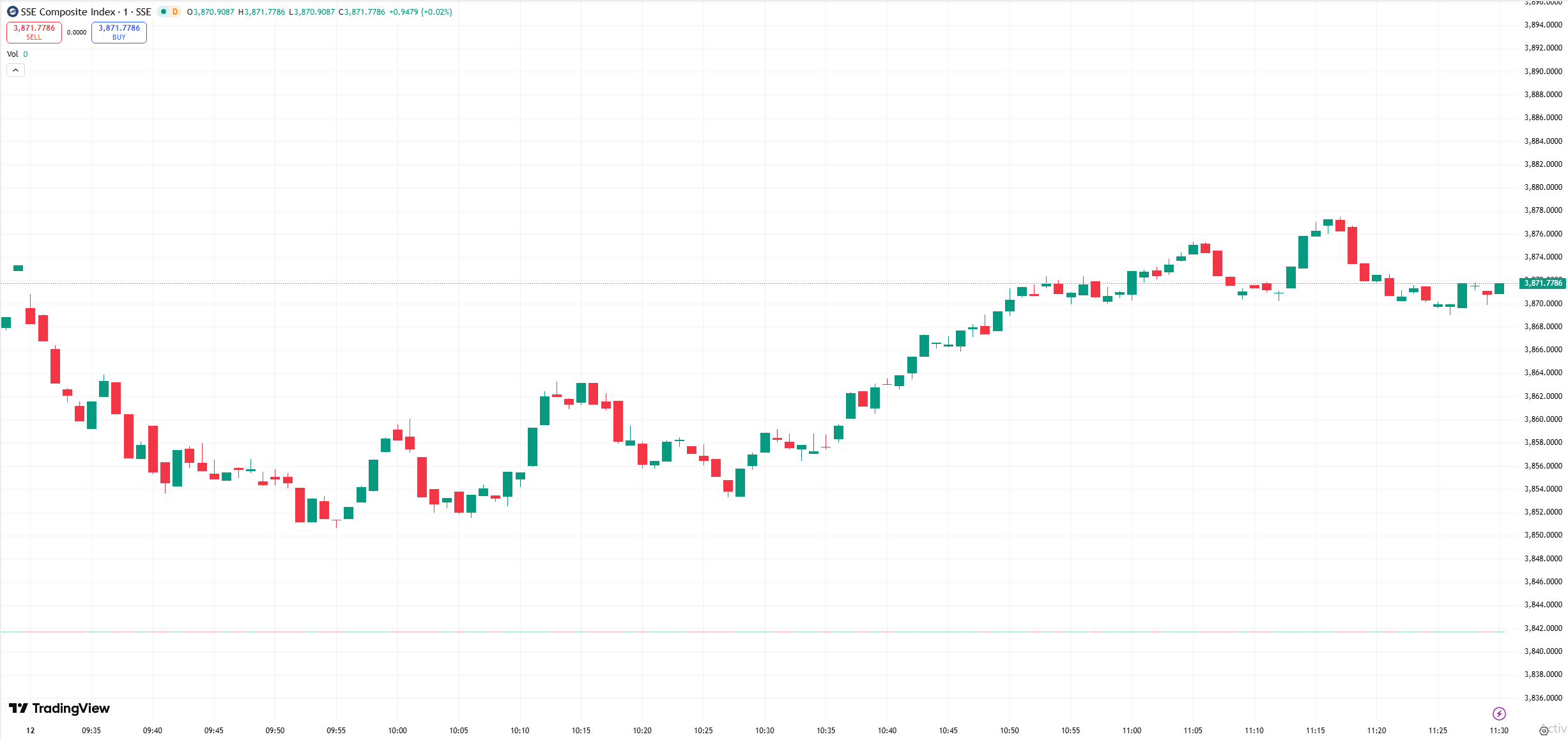 A-shares dipped early before rebounding. By midday, the Shanghai Composite fell 0.04 percent, while the Shenzhen Component rose 0.57 percent, and the ChiNext gained 0.6 percent. Over 3,200 stocks advanced and turnover reached 1.24 trillion yuan.