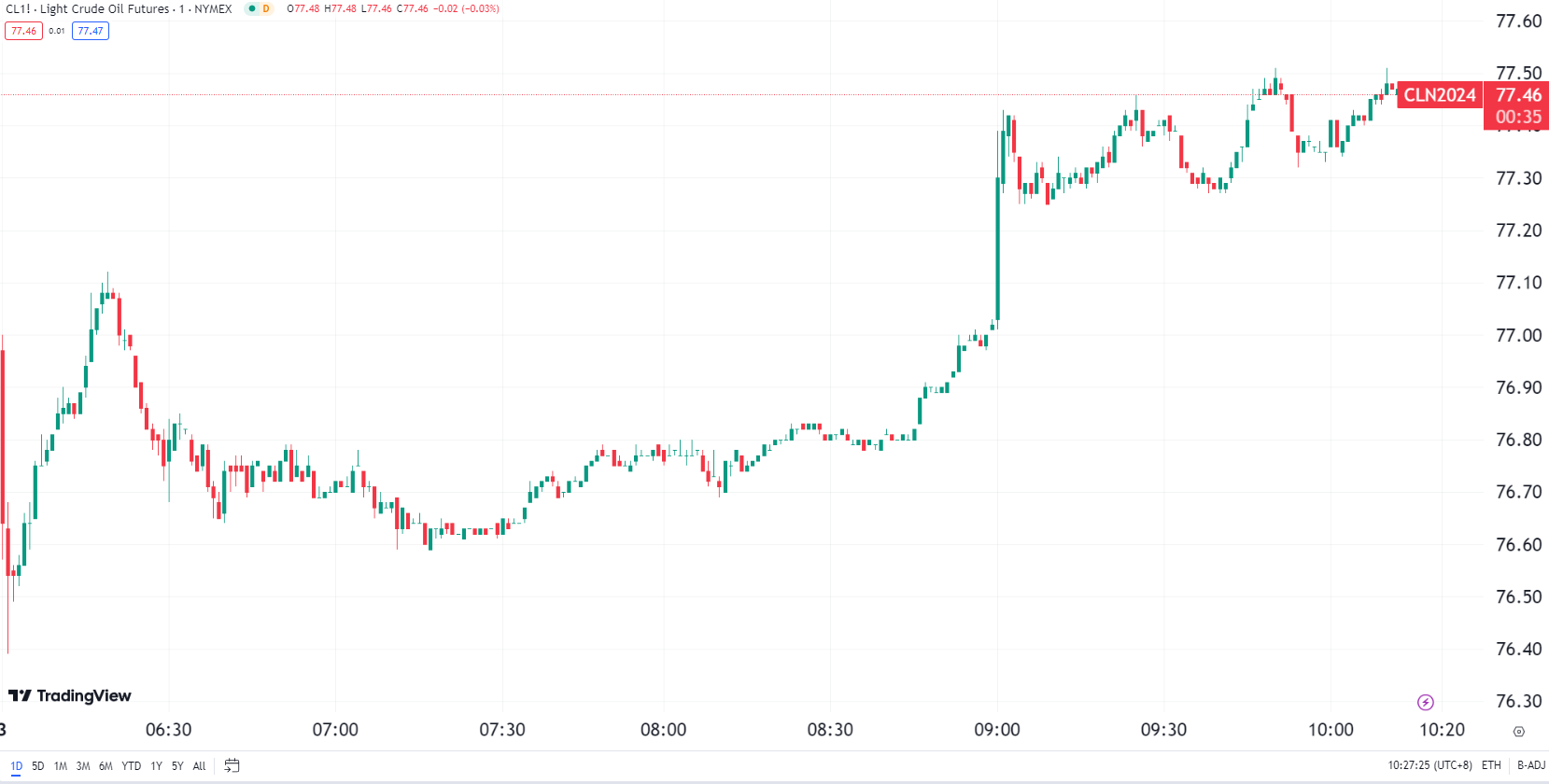 美原油小幅下探,一度刷新逾一周低点至 76.39 美元/桶,但仍坚守在 5 月 24 日创下的近三个低点 76.16 美元/桶上方,由石油输出国组织(OPEC)和以俄罗斯为首的盟国组成的 OPEC+产油国集团周日同意将大部分深度减产措施延长至 2025 年,给油价提供了一定的支撑。