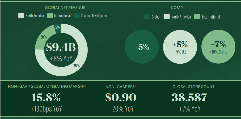 展望未来,星巴克将全年收入预期增长从之前的 10%-12% 下调至 7%-9%。此外,该公司还下调了全球同店销售预期,从之前的 5%-7% 降至 4%-6% 的范围,并重申了其全年每股收益增长 15%-20% 的预测。