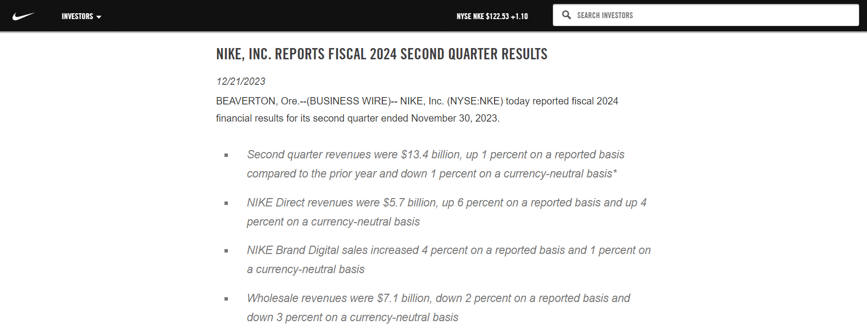 2023-12-22 | 耐克 , 财报