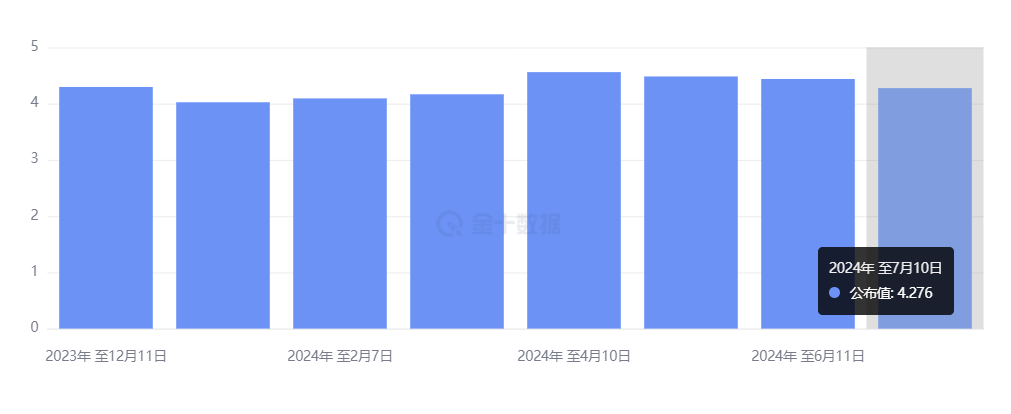 本次 10 年期国债拍卖的得标利率为 4.276%,大幅低于上次 6 月 11 日拍卖的 4.438%,为 5 月份以来的最低水平。本次得标利率比预发行利率 4.286% 低 1 个基点,也即没有出现体现需求疲软的尾部利差,这也是连续第二次没有出现尾部利差。