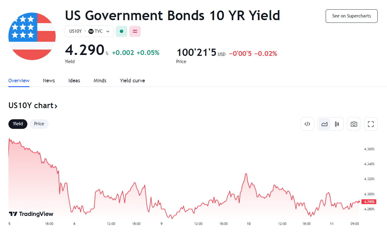 午盘时,美国财政部拍卖 390 亿美元10年期国债,令 10 年期收益率短线下挫约1个基点,重新跌向 4.2760%。
