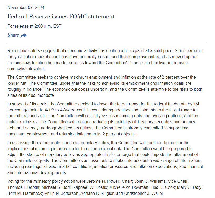 11 月会议纪要出炉,强调未来降息“循序渐进”