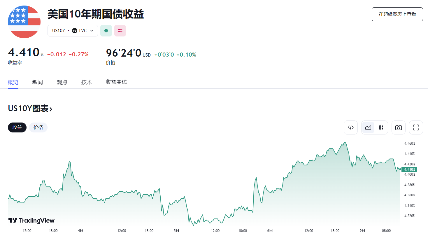 通胀忧虑重燃将 10 年期美债收益率推升至去年 11 月底以来新高。8 日,10 年期美债收益率报 4.43%;9 日,收益率一度达到了 4.46%,逼近 4.5% 的关键点位。