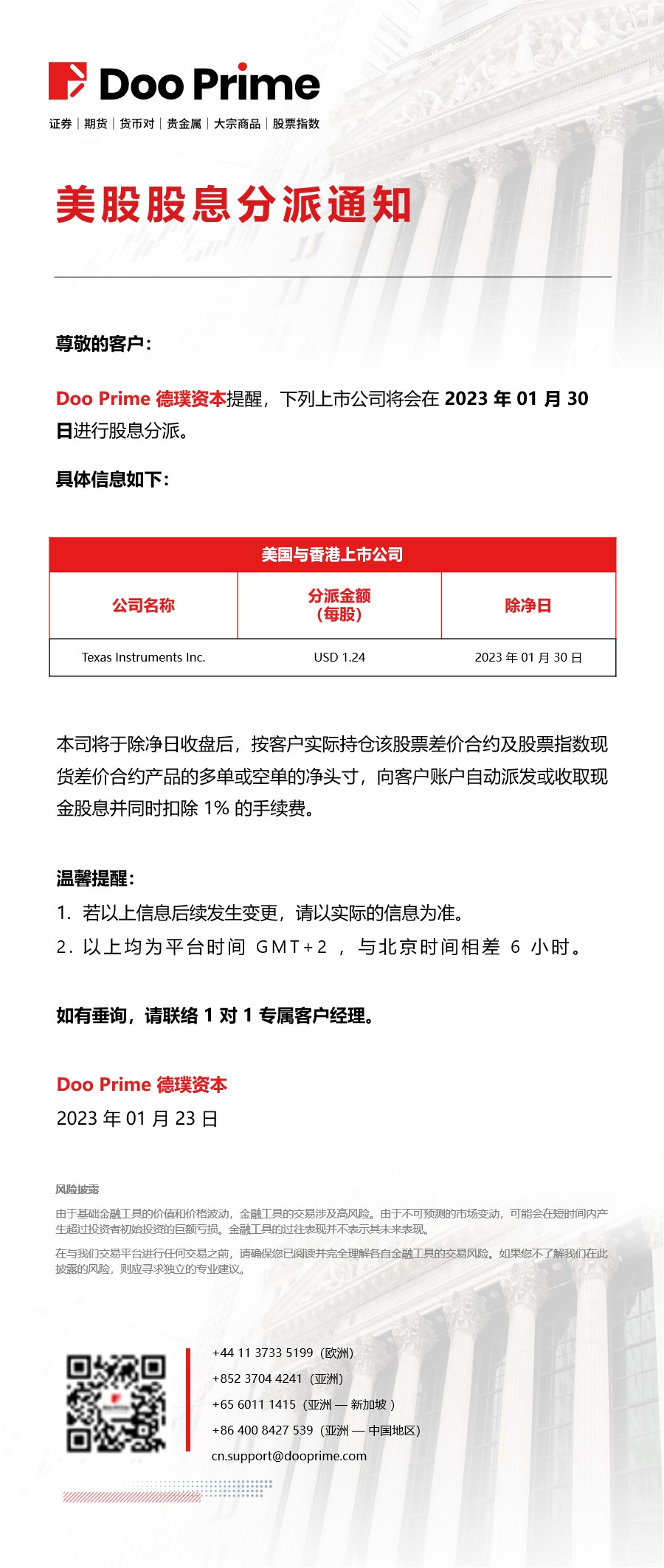美港股股息分派通知