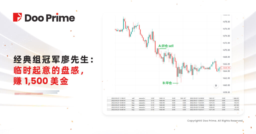 Doo Prime:在您的交易历史当中最大的一笔交易显得特别突兀,因为其他头寸都比较小,但是两手的黄金空单就显得很大,而且这一笔交易就一下子赚了将近 $1,500,您还记得为什么在当时会突然下这么大的投资?