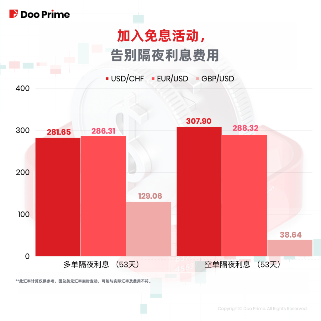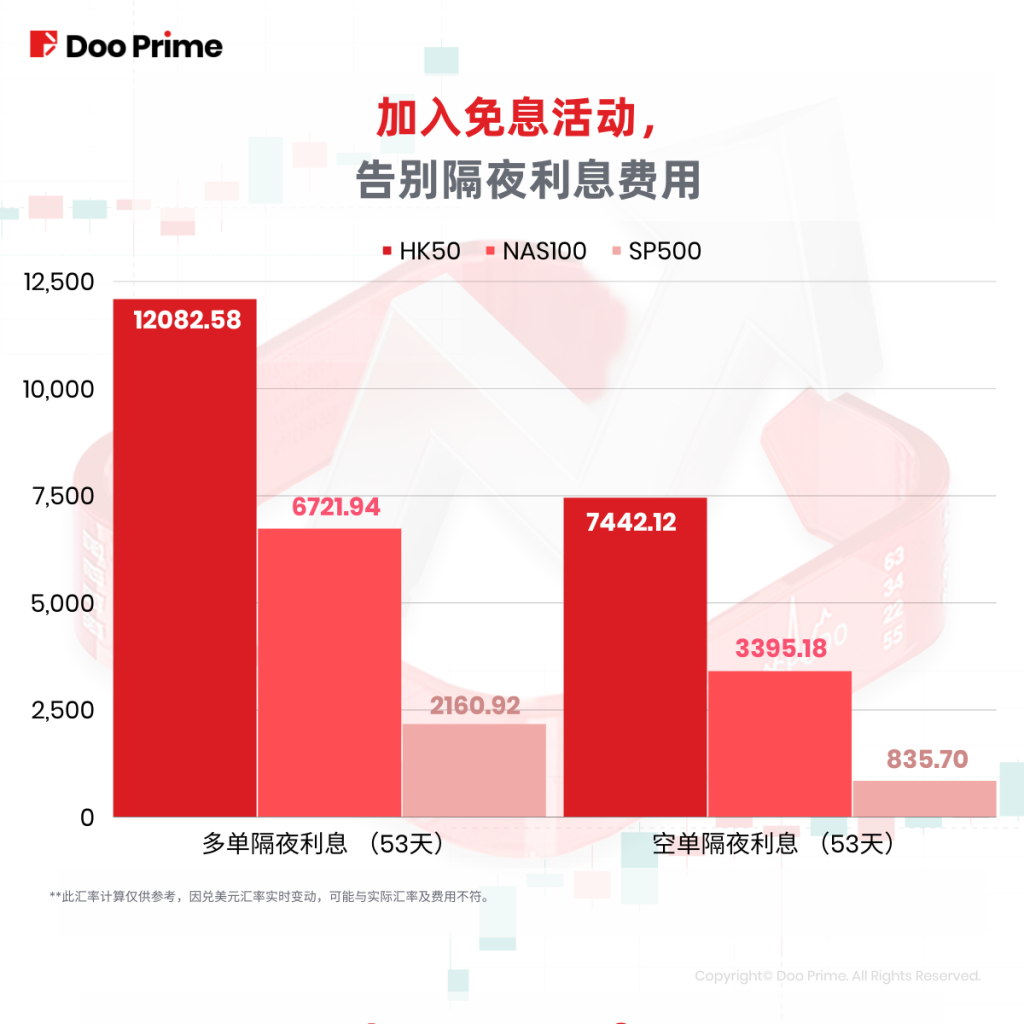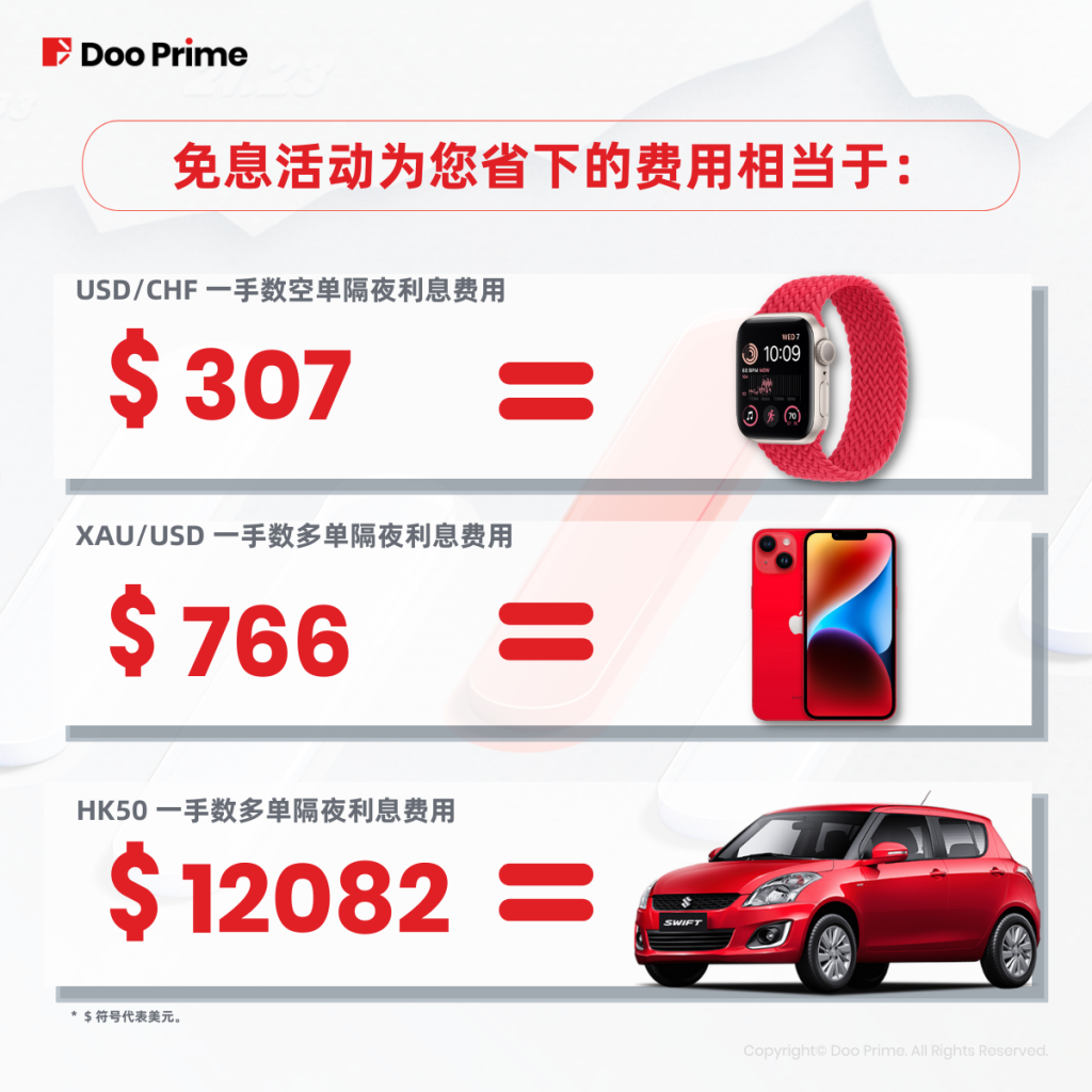 Doo Prime 免息活动自 2022 年 3 月 26 日起开展,并在 2022 年 7 月 2 日推出第二轮免息活动,将主要货币对也纳入了免息范畴中。至此,贵金属、股指现货、美股及主要货币对均属免息产品。