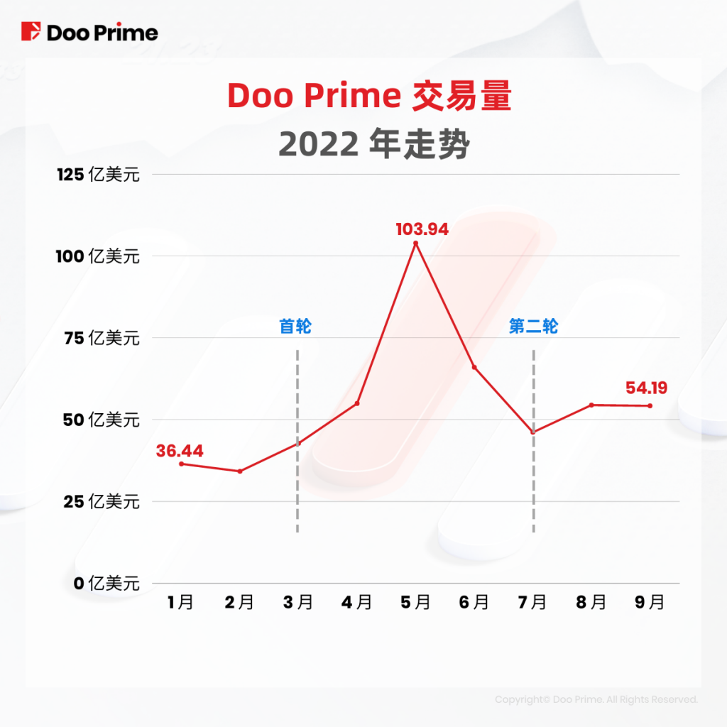 尽管年初迄今,全球市场一直动荡不断,但 Doo Prime 的交易量却实现了稳步增长。如下图所示,自首轮免息降息活动启动以来,交易量已出现显著增幅。而今年 5 月,交易量更是实现突破性增长,其他月份则趋于平稳。