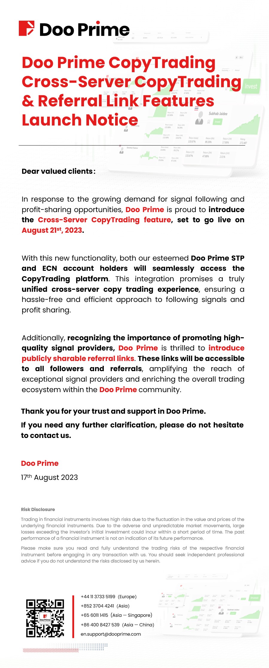 Doo Prime CopyTrading ​Cross-Server CopyTrading & Referral Link Features Launch Notice