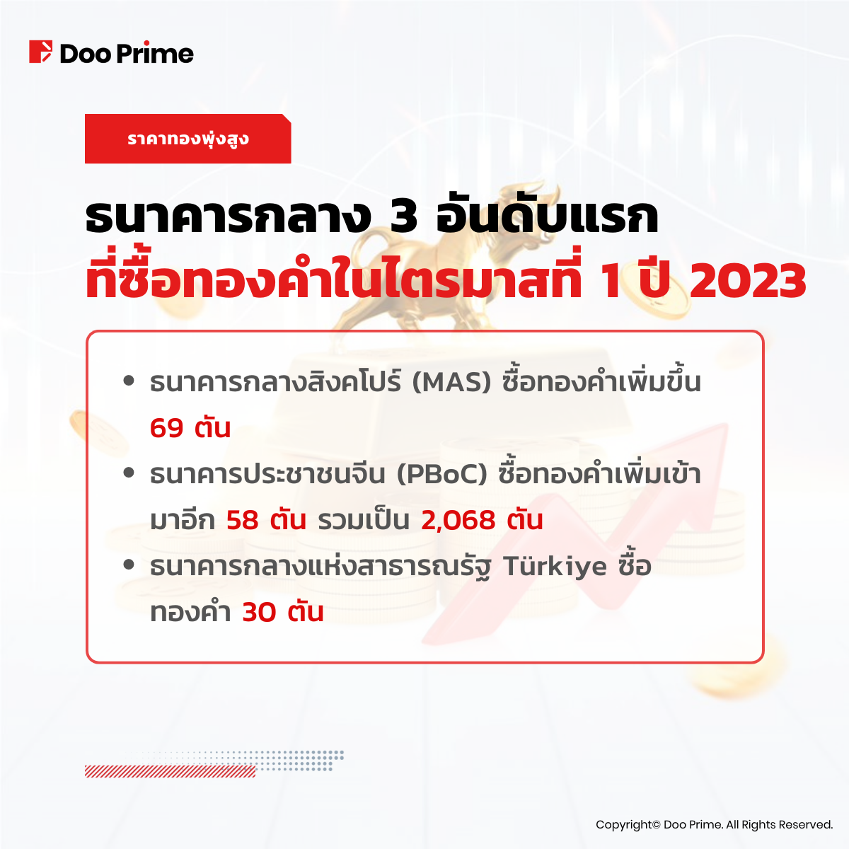 ธนาคารกลาง 3 อันดับแรกที่ซื้อทองคำในไตรมาสที่ 1 ปี 2023