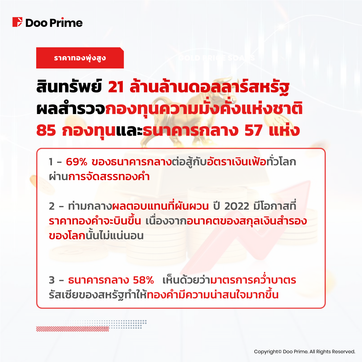 การซื้อทองคำอย่างต่อเนื่องโดยธนาคารกลางและธนาคารเพื่อการลงทุนรายใหญ่มีแนวโน้มที่จะสนับสนุนราคาของทองคำในอีกไม่กี่เดือนข้างหน้า นี่อาจเป็นข่าวดีสำหรับนักลงทุนระยะยาวที่ต้องการเพิ่มทองคำในพอร์ตการลงทุนและปกป้องความมั่งคั่งของพวกเขา