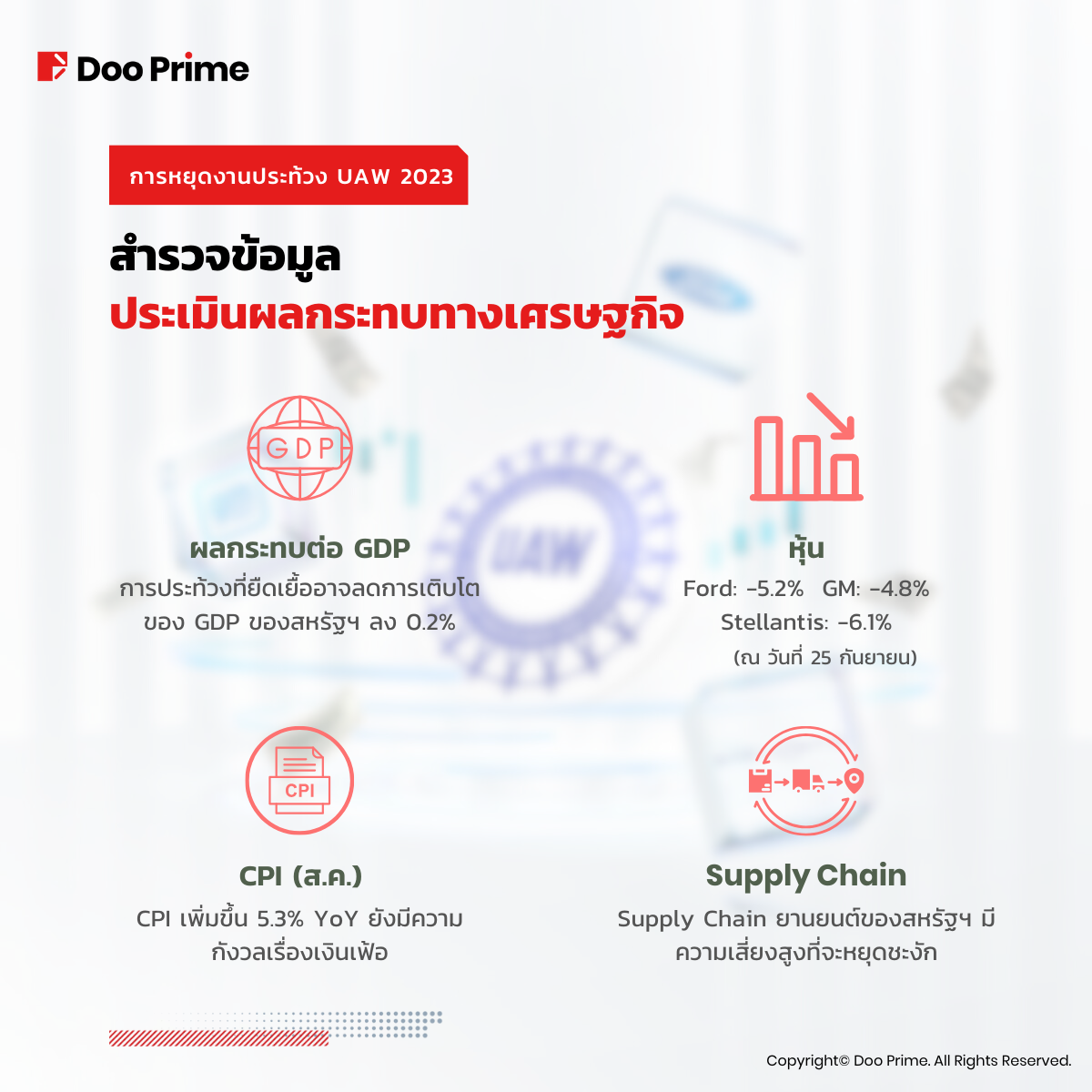 สหภาพแรงงานยานยนต์สหรัฐ (UAW) หยุดงานประท้วง ผลกระทบทางเศรษฐกิจ และตลาด Ford, GM และ Stellantis