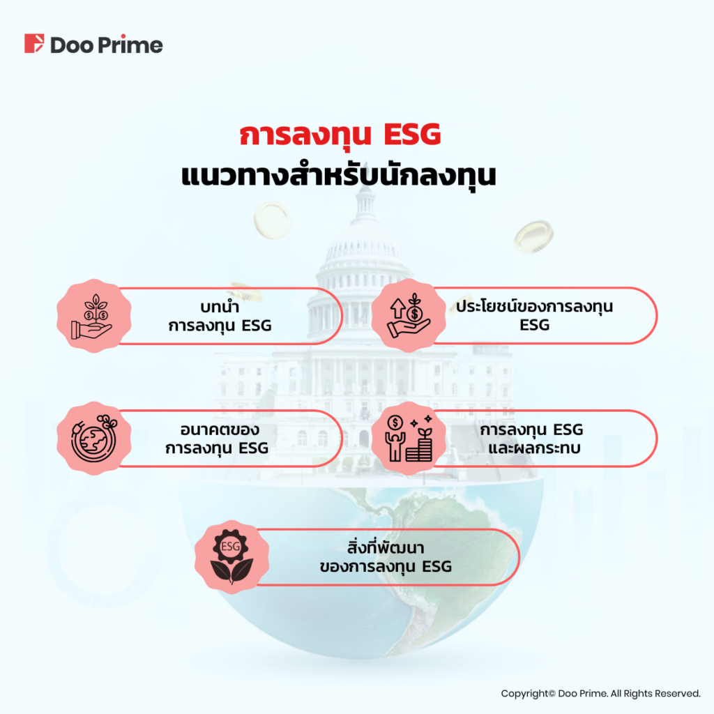 โดยภาพรวมแล้ว การลงทุน ESG เป็นเครื่องมือสำคัญสำหรับนักลงทุนที่ต้องการปรับการลงทุนให้สอดคล้องกับคุณค่าและสร้างผลกระทบเชิงบวกต่อสังคมและสิ่งแวดล้อม เมื่อผู้คนจำนวนมากขึ้นตระหนักถึงผลกระทบต่อสิ่งแวดล้อมและสังคมจากการลงทุน ความต้องการในการลงทุน ESG ก็มีแนวโน้มที่จะเติบโตอย่างต่อเนื่อง