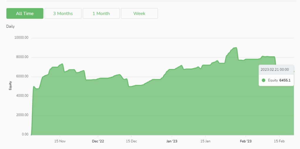 ผลตอบแทนรายเดือนของ “EURUSD Expert” นั้นโดดเด่นไม่แพ้กัน ในเดือนพฤศจิกายน 2565 เพียงเดือนเดียว ผลตอบแทนก็พุ่งสูงถึง 55.78% แม้ว่า “EURUSD Expert” จะเน้นไปที่คู่สกุลเงิน EUR/USD เป็นหลัก แต่ผลตอบแทนในเดือนกุมภาพันธ์นั้นลดลงเพียงเล็กน้อยเท่านั้นจากอัตราแลกเปลี่ยน USD ที่ผันผวนตามข่าวท่าทีของเฟด อย่างไรก็ตาม ผลตอบแทนเฉลี่ยต่อเดือนของ “EURUSD Expert” จนถึงปัจจุบันนั้นสูงถึง 29.58%