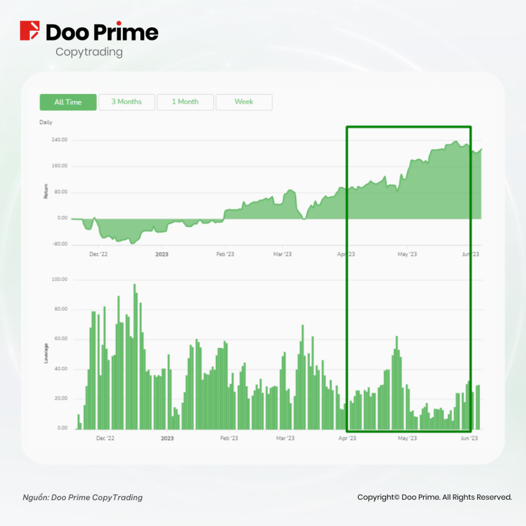 Đáng chú ý, Doo Prime CopyTrading đã ghi nhận một cột mốc chưa từng có trong tháng 5, với mức lợi nhuận trong tháng cán mốc 62,418.42 USD đối với tất cả các nguồn tín hiệu chất lượng cao. Con số trên đã “đạp đổ” những kỷ lục trước đó, đồng thời thiết lập một chuẩn mực mới hướng đến sự thành công kể từ khi Doo Prime CopyTrading chính thức ra mắt.